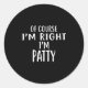 Adesivo Redondo Of Course I'm Right, I'm Patty Novelty Humor