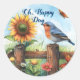 Adesivo Redondo Oh Happy Day Bluebird e Sunflower Sticker