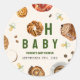 Tema de brunch de chá de fraldas de Pastries & Pacificadores com Ilustração de uma massa incorporada à design com ilustrações de pacificador, café e massa por toda parte.