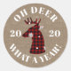 Esta engraçada design de Natal lê OH DEER O QUE UM ANO em volta de uma cabeça de cervo de xadrez de búfalo. Você pode usar esses adesivos como fechos de envelopes ao enviar nossos Cartões de natal coordenadores.