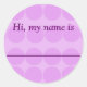 Nomes de etiqueta pontilhados/adesivos de lapela em tons de lavanda. Excelente a ser usado para introduções durante vários eventos.