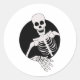 Um esqueleto dentro um buraco dizendo olá a todos.