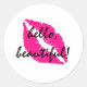 Olá, Bela com Batom Rosa. Batom rosa e suave com a expressão/saudando 'olá, lindo' em uma fonte legal.