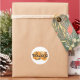 Olá em francês - Bonjour Em uma fonte simples no estilo do grafite com elementos decorativos como setas. O fundo é feito de círculos amarelo e laranja.