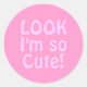 Adesivo Redondo Olha, eu sou tão giro. Cor de Rosa.
