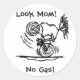 Um desenho fofo a lápis a verde de um cavaleiro de bicicleta a pingar uma roda. O texto diz: "Olha mãe! Sem gás!" Um presente divertido para o seu condutor de bicicleta favorito ou amigo ecologicamente consciente - ou talvez para si próprio. A diversão do andando de bicicleta com um estilo de vida saudável e salvar o tema do mundo.