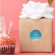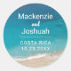 Ondas do oceano azul turquesa profundo chegando à costa para encontrar areia macia em uma tipografia de vibe moderna retrô adesivo para embalagem de lembrancinhas de casamento de praia ou selos de envelope. Clique em 'personalizar ainda mais' para alterar as fontes, a cor do texto ou o design.