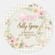 Adesivo Redondo One Silly Goose Gingham Pink Flora Birthday Party