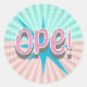 Adesivo Redondo Ope, Engraçado Gíria Midwest | Rosa e Azul