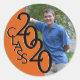 Classe do adesivo fotográfico de 2020, ano de graduação, em laranja, imagem perfeita para favores e envelopes de convite. Carregue um instantâneo favorito do seu formando e adicione texto, se preferido.