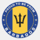A bandeira nacional de Barbados é infundida numa forma circular que ela própria é colorida nas cores da bandeira. Junto com as estrelas decorativas, há o texto orgulhoso e patriótico.