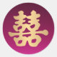 Este design apresenta o caráter auspicioso chinês de dupla felicidade em ouro falso contra uma matiz encantadora de vermelho marrom. Perfeito para qualquer ocasião de casamento.