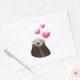 Um adesivo com uma imagem de uma fofa com corações flutuando para cima. Os corações são cor-de-rosa e gordinhos com uma reflexão brilhante. Esta lontra é muito adorável com as patas descansando sob seu queixo peludo. Seu pelo parece molhado de pendurar na água.