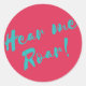 Ouça-me um texto azul rugido sobre fundo vermelho.