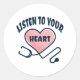 Adesivo Redondo Ouça seu estetoscópio cardíaco