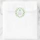 A charming St. Patrick’s Day baby shower round sticker featuring a soft green background, golden horseshoes, and scattered four‑leaf clovers for a sweet “lucky charm” theme. The central white oval frames the event details beautifully, creating a warm, welcoming design perfect for celebrating a growing family. Ideal for March celebrations, Irish‑inspired themes, or any baby shower that embraces luck, joy, and new beginnings.