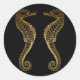 Ouro Seacavalo Sticker bela Silhouette criatura marítima em ouro sobre fundo negro