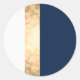 Adesivo Redondo ouro fino elegante, azul marinho, tiras brancas