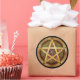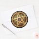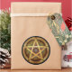 Eu fiz dois tratamentos do pentáculo, um ouro, e o outro prata; cada um é essencialmente o mesmo exceto pela paleta. Há 18 dragões "assados" - dez no círculo, oito nos cantos - com vários painéis de bandas entrelaçadas - e, claro, o próprio pentáculo está aqui transformado em um design de puxão.