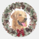 Adesivo Redondo Ouro Retriever Arco Vermelho Pinecone Wreath Natal