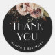Adicione o toque final perfeito aos brindes da sua festa com esses adesivos de agradecimento boho inspirados para Sweet Sixteen. Com um fundo preto moderno, letras elegantes e flores em aquarela suave com folhas de outono terrosas, são ideais para uma celebração de aniversário de Sweet 16 no outono. Ótimos para selar envelopes, decorar sacolas de presentes ou personalizar brindes, esses adesivos personalizáveis combinam praticidade com estilo. Uma escolha linda para um Sweet Sixteen boho, aniversário de outono ou tema floral rústico. Eles combinam perfeitamente com convites, pratos e artigos de festa correspondentes.