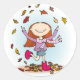Adesivo Redondo Outono/diversão nas folhas, garota branca