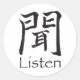 O símbolo Kanji japonês da palavra "Ouça" é mostrado em pinceladas de caligrafia e parece muito legal em uma camisa, bolsa, boné ou botão. Nós até adicionamos a tradução em inglês abaixo para que o pessoas receba a mensagem. O design do caractere é baseado em um gateway com um dentro de ouvido. Bonito legal! Você pode alterar a cor de fundo e adicionar texto também.