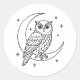Adesivo Redondo Owl on Crescent Moon with Stars Line Art