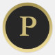 Adesivo Redondo P: Monograma P Elegante Dourado e Preto