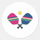 Esses adesivos vibrantes e divertidos, personalizados, de picleball apresentam pás listradas em azul, verde, rosa e amarelo.Parte de uma coleção do Parcel Studios.