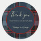 Este obrigado de casamento que você cola vem em diferentes tamanhos, formas e papéis. É personalizável com seus Intros, nomes e ou monogramas. Ele mostra uma mistura harmoniosa de um padrão escocês preto vermelho-marinho azul e ele tem tons azul claros e tipografia branca. A cobertura azul redonda mínima de marinho com uma borda de burgundy é para sua personalização. Hobinishop