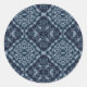 Adesivo Redondo Padrão de azulejo azul Elegante
