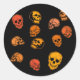 Um padrão assustador de crânios em um fundo preto. Os adesivos de Halloween fazem truques de excelente ou tratam presentes, e são divertidos por decorar todos os seus projetos de Halloween. <br>Veja todos os nossos adesivos de Halloween no nosso compro em ()! <a href="http://www.zazzle.com/stickermad/products?dp=0&cg=196880420703973077</a>Copyright Scarebaby Design, um nome de marca registrado e apoiado pela garantia Zazzle.