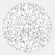 Adesivo Redondo Padrão de Curva Preta Pintado à Mão em Branco