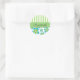 Adesivo Redondo Padrão De Flores, Listras Verdes, Seu Nome