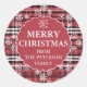 Adesivo Redondo Padrão de xadrez do flanela editável vermelho escu