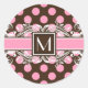 Padrão de bolinhas cor-de-rosa e castanho com um monograma personalizado e uma borda elegante e branca esbranquiçada.