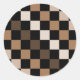 Adesivo Redondo Padrão Gingham Preto-Castanho Verificado