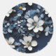 Essa imagem mostra um arranjo elegante de flores azuis e brancas com pétalas e folhas intrincadas, criando um sofisticado efeito 3D.