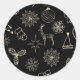 Adesivo Redondo Padrão Simples de Natal Preto e Dourado Fofo