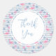 Obrigado, palhaços com um padrão com uma vibração de verão divertida. flamingos e abacaxis cor-de-rosa, colocados sobre um padrão listrado azul claro com folhas e corações ao redor.