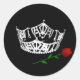 Um adesivo redondo mostrado a preto com um impressão litoral de uma coroa de rainhas do concurso e uma rosa vermelha. Personalize este item ou comprar como está.