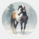 Bring irresistible charm to your Christmas gifts and mailings with this cute sticker featuring a beautiful Paint Horse standing in the snow wearing a Santa Hat. The illustration captures a warm and whimsical holiday moment—perfect for pet lovers, Horse enthusiasts, or anyone who appreciates cute seasonal décor.