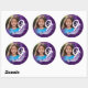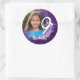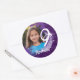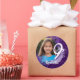 Adicione um pouco de pizzazz à sua 9ª festa de aniversário com adesivos personalizados para fotos, com design de tinta púrpura spray. Os adesivos são personalizáveis onde você pode adicionar sua própria foto e nome.
