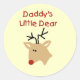 Uma rena marrom com nariz vermelho e texto vermelho que diz "Pai Little Dear" em T-shirts personalizáveis, sacos de tote e outros itens de férias.