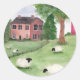 Adesivo Redondo Paisagem de Fazenda de Ovelhas