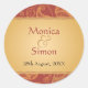 designs Dourados paisley sobrescrevem um fundo profundo de cor de ferrugem.Os nomes do casal e a data do evento estão localizados em um painel de gradiente do ouro. Excelente para um casamento temático do sudeste asiático ou quando você quer fazer uma declaração corajosa e corajosa. Disponível em cores alternativas com produtos correspondentes.