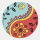 Adesivo redondo com um design paisley funky em vermelho, amarelo e turquesa. Coordena com meus designs Rangoli.