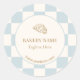 Adesivo Redondo Pale Blue Checkered Cafe Croissant Bakery