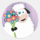 Uma ovelha fofinha segura um monte de flores azuis, roxas, cor-de-rosa e laranja nesses bonitinhos carneiros. Os adesivos também podem ser usados como selos de envelopes divertidos. Copyright © Lisa Marie Robinson Todos os direitos reservados. É ilegal usar ou duplicar isso, ou qualquer uma de nossas imagens, sem permissão por escrito.